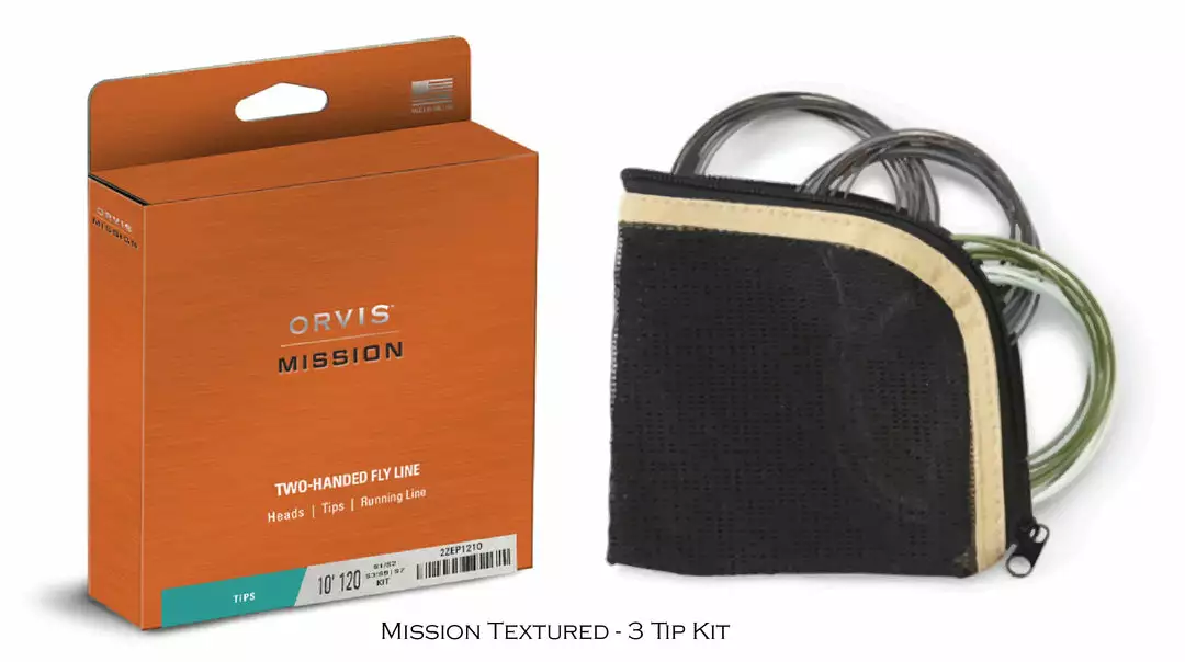Mission Textured Sink Tip Kits are offered in three grain weights (80 gr, 120 gr, 160 gr) each with three sink tips included (INT/S2 1.25/2 ips.; S3/S5 3/5 ips.; and S7 7 ips). Kit comes with wallet to store sink tips.