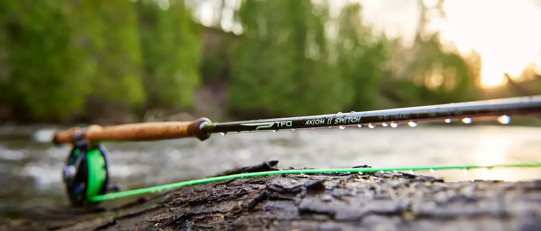An evolution from our wildly successful Deer Creek Series, the Axiom II switch family features the same easy loading, close quarters casting attributes, in medium-action and medium stiffness, engineered to fit the angler and the scenario, (not the other way around). The Axiom II switch rod offers the optimization of the benefits of two-handed or spey style casting, but with a shorter lever, (to accommodate medium sized water, or tight-quarters fishing out of a boat).